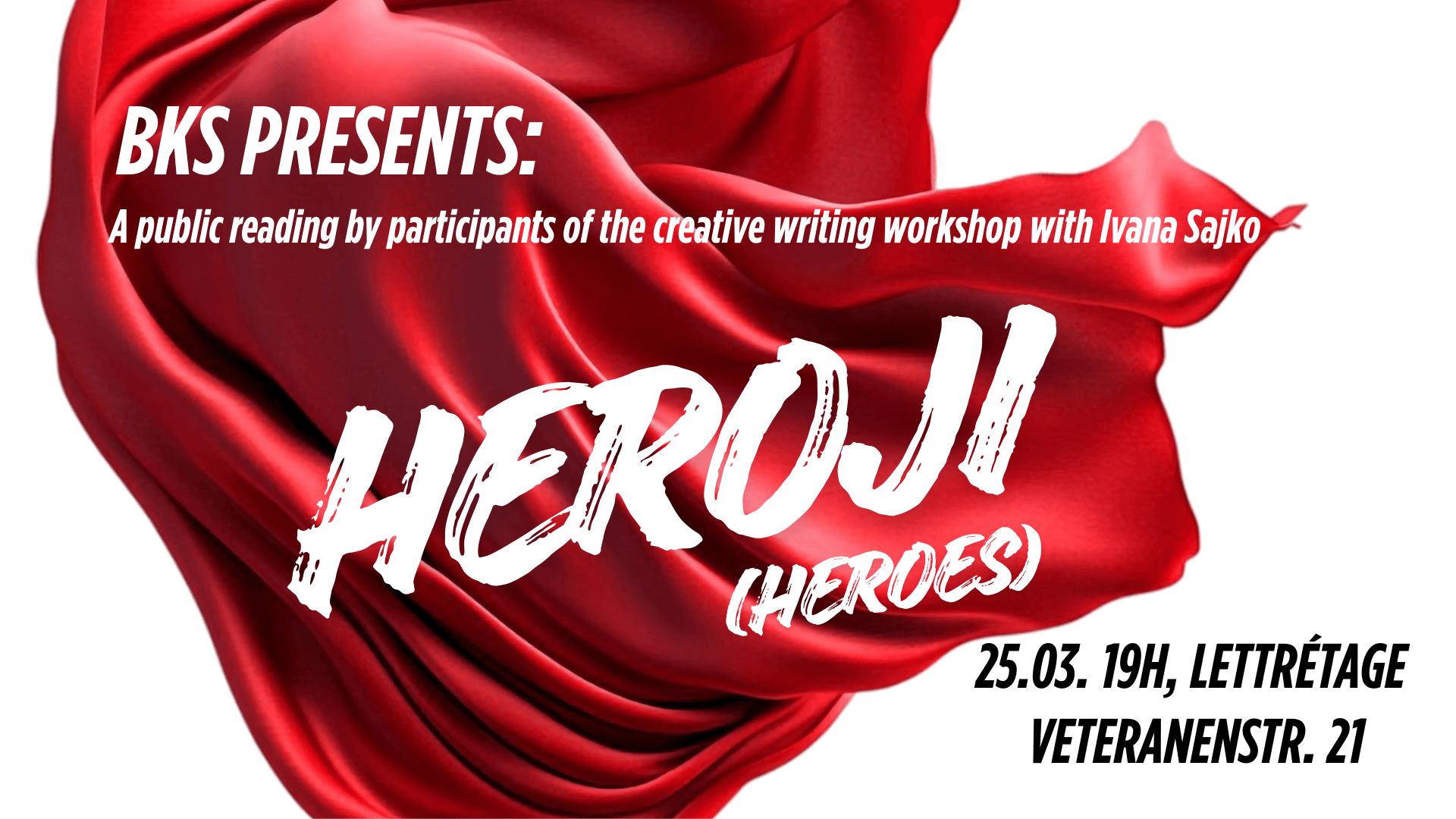(c) BKS Berlin After "Ten Ways to Leave" and "On one Youth", the latest cycle of creative writing sessions with Ivana Sajko takes up the topic "Heroes". When talking about a hero/heroine in art, we always talk about a problem with the world. We actually talk about finding the strong voice that resists habits and conventions. It is enough to remember David Bowie and understand that the heroes we try to remember in our biographies or invent in our hearts are people from everyday encounters who go against the grain and move forward by jumping over walls.